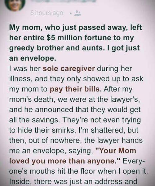 So when I sat in the lawyer’s office, surrounded by relatives who had barely shown up except when money was involved, I believed that maybe, just maybe, she had seen me. That she knew what those years had cost — and what they had meant.